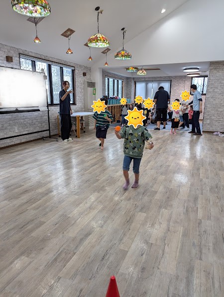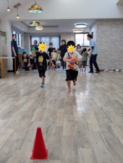 ボールを落とさないように上手にお友達にバトンタッチ出来たね(^^)v