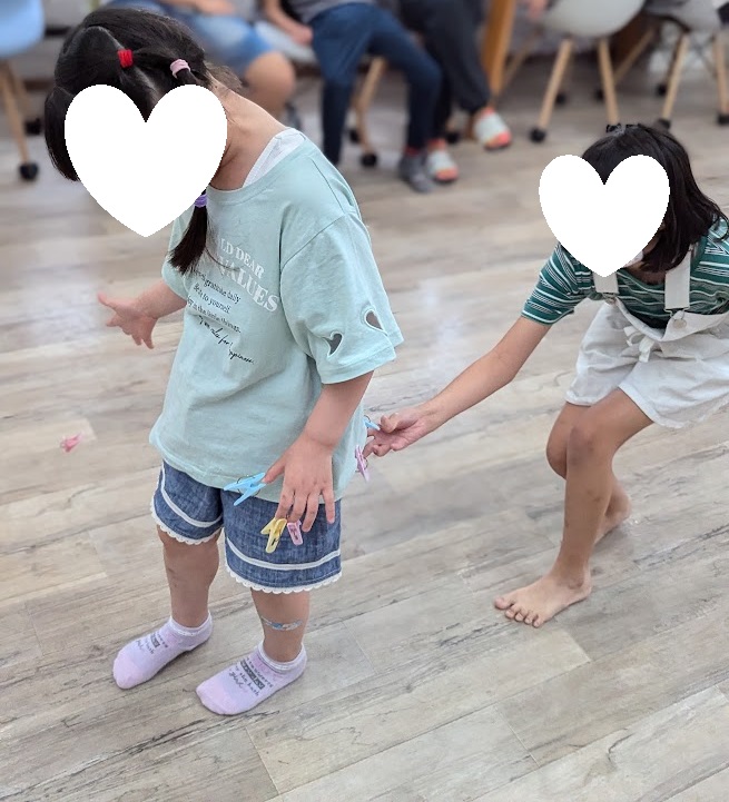 洗濯ばさみが最後に一番少なかった子が優勝🥇というゲーム。