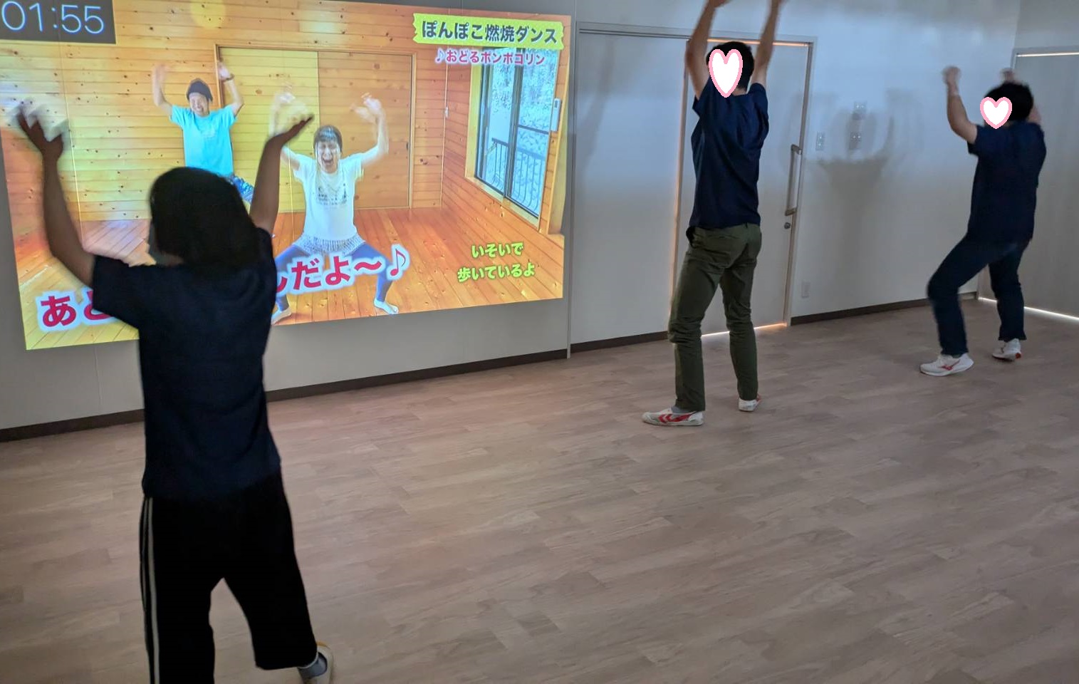 エアロビクス班はヘトヘトになるまで身体を動かして大盛り上がりでした💦