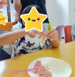 こどももスタッフも手を石鹸で、キレイにしてからギョウザづくりを始めました。