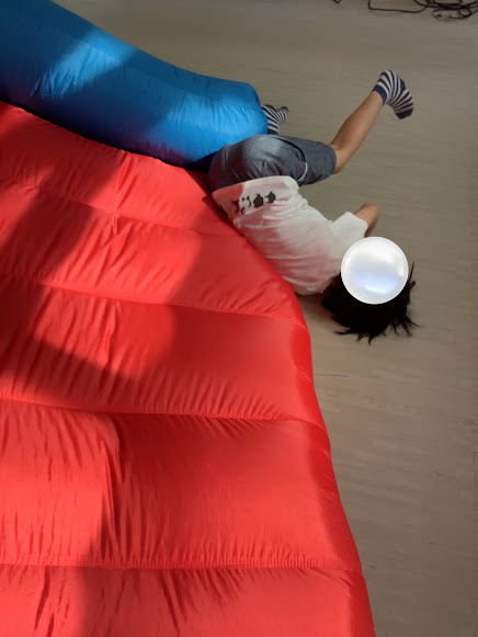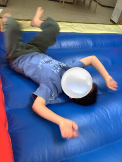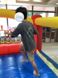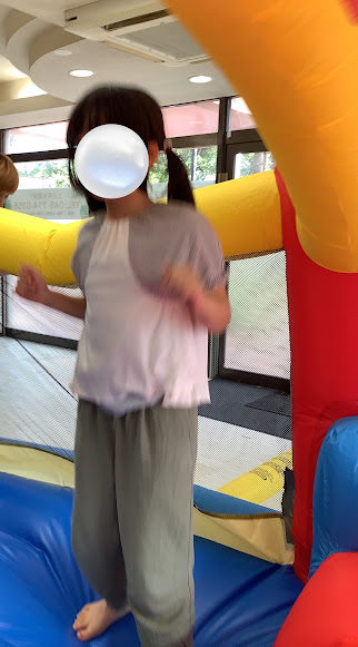 順番が来るとにこにこでみんなバウンサーの中に入っていきます😆