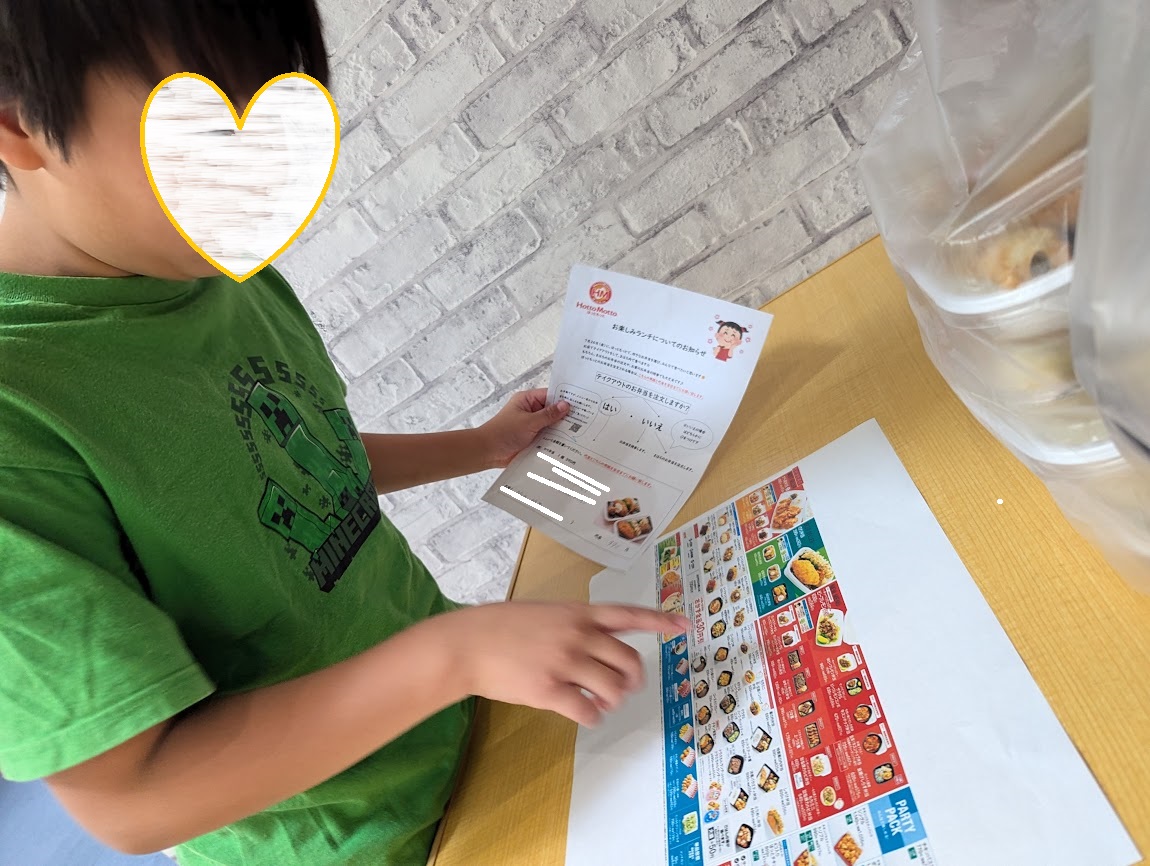 メニュー表を見て自分の食べたいお弁当を注文します。