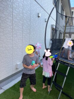 さらに午前中は、お庭でトランポリンをしたり、水鉄砲をして遊んだり…☆彡
