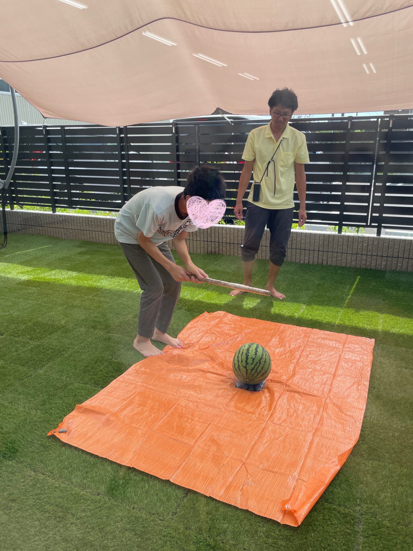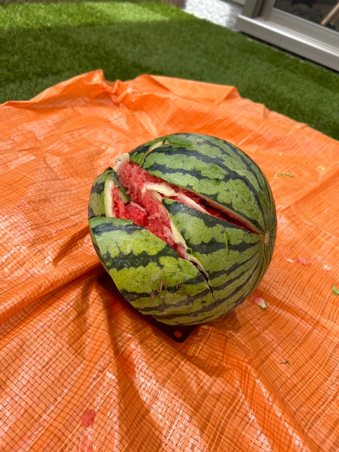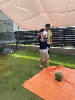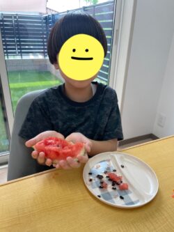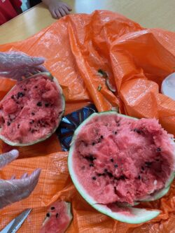 割れたスイカは、みんなでおいしくいただきました🍉