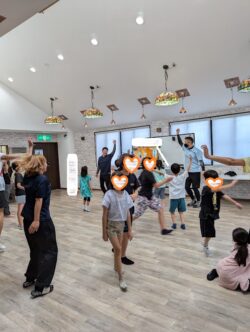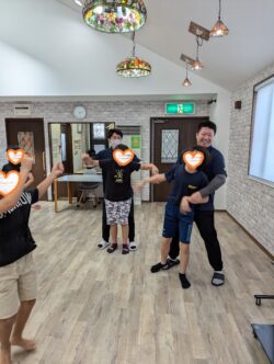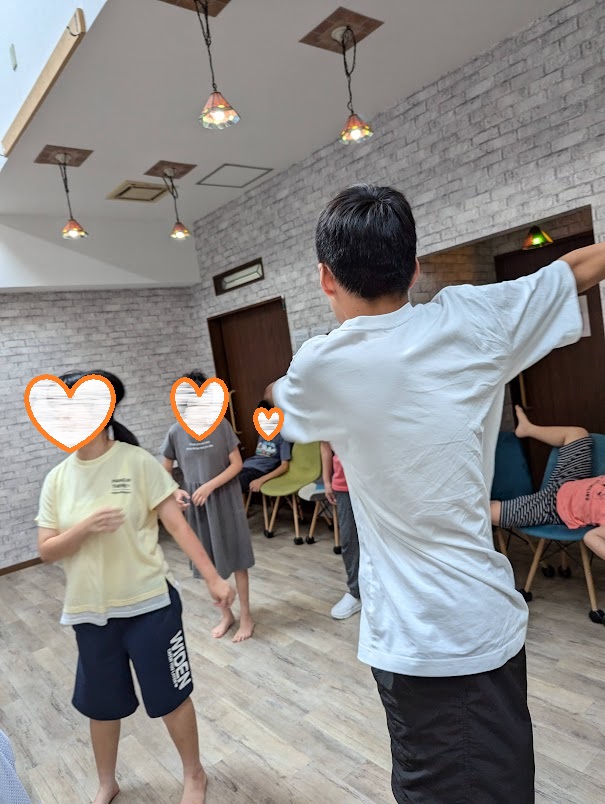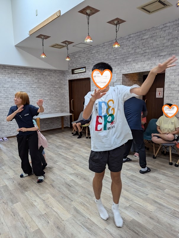スタッフも一緒に体を動かして、汗だく💦