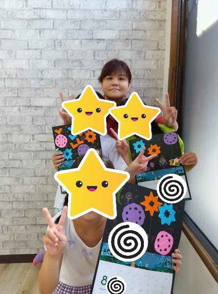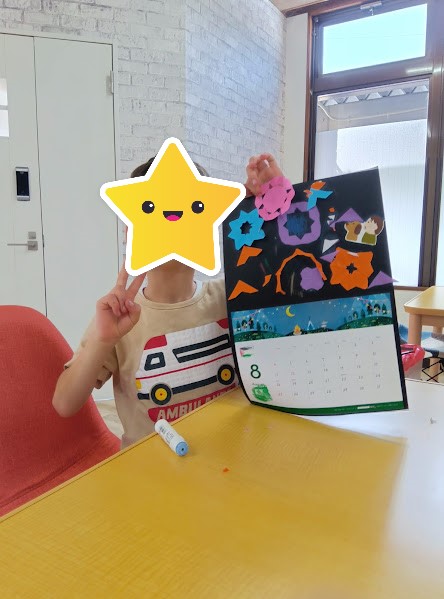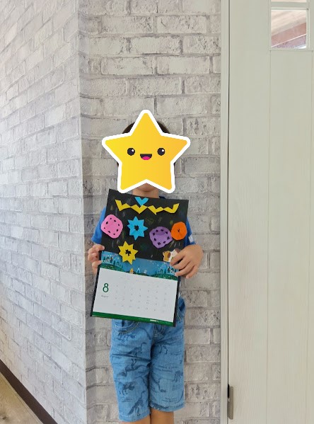 出来上がりです。とてもキレイでかわいいらしい8月のカレンダーができました🎇