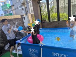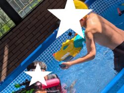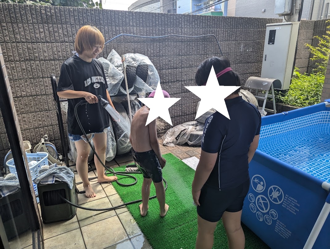 日に日にみんなの水鉄砲の当て方が上達していて、スタッフもびしょ濡れです💦
