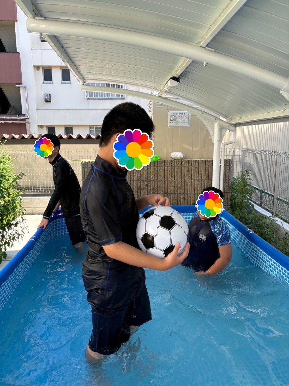 浮き輪にのったり、ボールで遊んだり笑顔いっぱいです😊