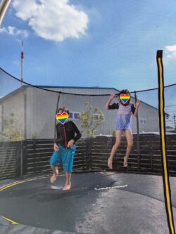 待っている間もトランポリンをしたり水遊びをしたりと楽しそう💖