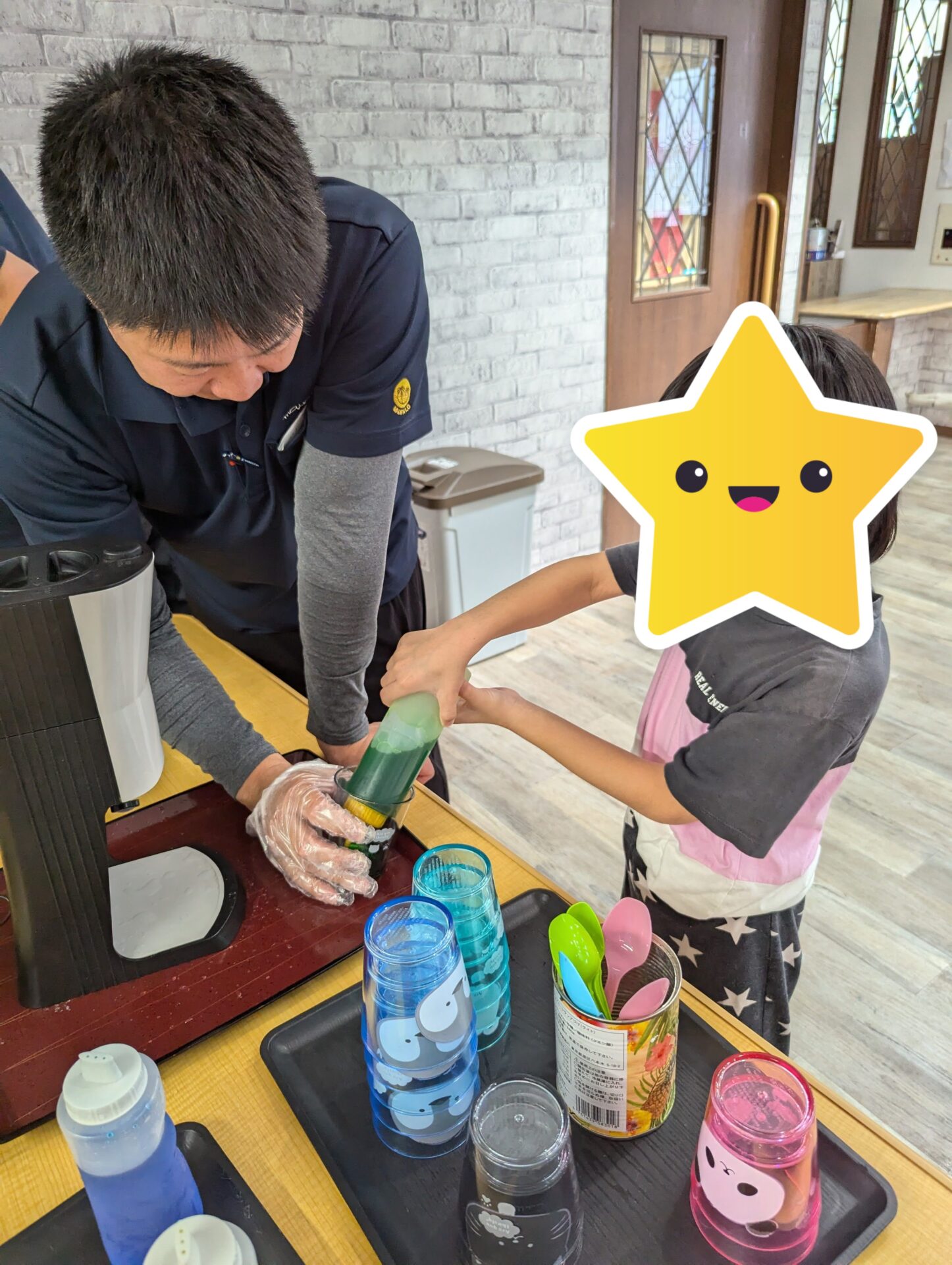 自分でかき氷を作ったり、シロップをかけたりと、みんな楽しそうです。