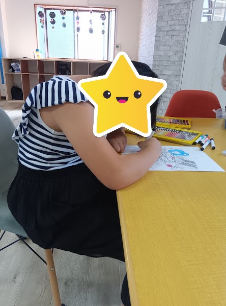 ぬりえに集中しています。とても上手にできていました🌟