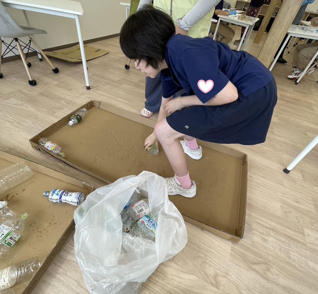 本日の午前中はペットボトル潰しチームと軽作業チームに分かれて作業を行いました😆