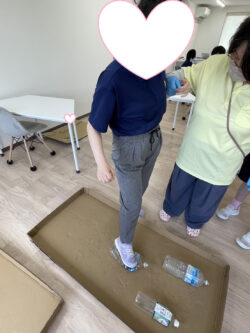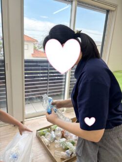 ペットボトル潰しチームは気合を入れて夏の暑さで量が増えたペットボトルを潰します👣