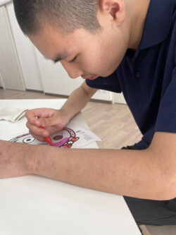 今日はお面の色塗りや、射的の的を作ります💪