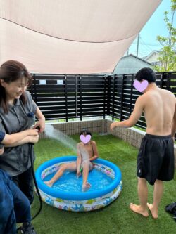 お庭でトランポリンや水てっぽうでも遊びました(#^^#)