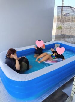 大きな浮き輪や水鉄砲で思い切り遊びましたよ。