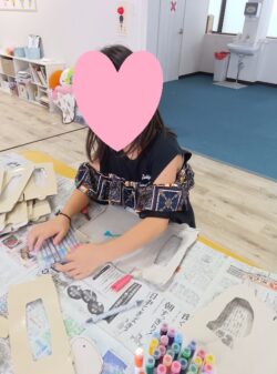 空き箱に魚の絵をたくさん描いてもらいました👍