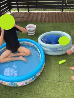 中くらいのプールと、小さなプールに分かれて水遊びを楽しみました💙