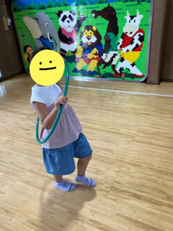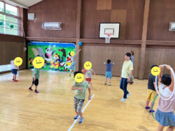 バスケットボール、フラフープ、体育館内の設備で遊んだり、思い切り走り回って身体を