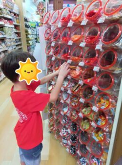 本日は、鹿屋の「ドン・キホーテ」に行き、新しいおもちゃや、おやつの時間にみんなで食べるおやつを買いに行きました。