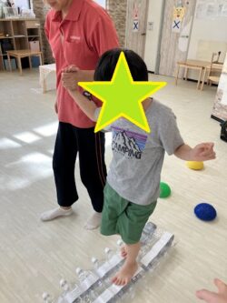 足の裏の刺激を感じながら不安定な所をなんとかバランスをとって足の筋力トレーニングにもなります!
