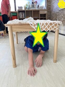 始めにテーブルの上に網をかけた所を通り抜けます。