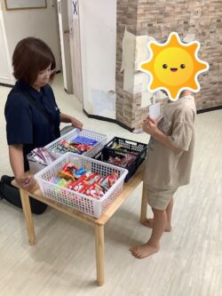 ちょっと悩んで、お菓子を受け取れました。