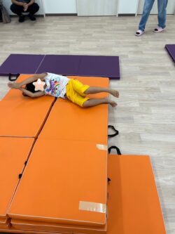 マット運動では、マットの上を鉛筆になりきって転がりました☆彡