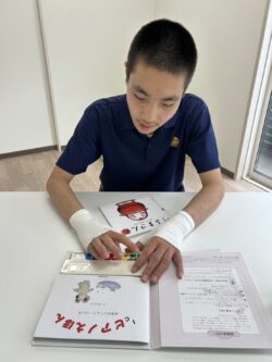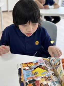 この本、音が出る~、これを押すと…❕