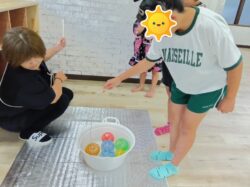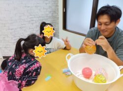 午前中に自分たちで膨らませたヨーヨーとにらめっこ!