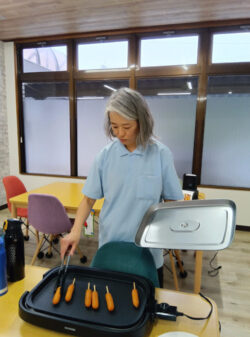 「フランクフルトいかがですか~?」と、フランクフルトを焼く香ばしいいい香りがしてきました~🥰