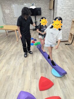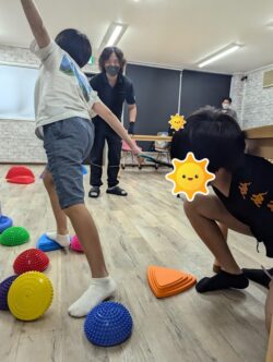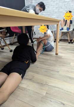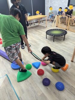 今日のサーキットでは「狭い所くぐり・飛び石・平均台・輪っかくぐり・トランポリン」をお友達と輪を持って乗り越えていただきます🔥