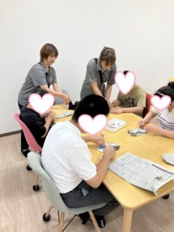 今月の「防災の日」にちなんで、非常災害時にも活用できる新聞紙スリッパの作成を行いました(^^♪