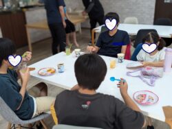 いつもと違うおやつを楽しみ、周りのお友達と会食をすることでマナーを学んだり、心のつながりを感じ、食への興味も持ってもらうことが目的です。