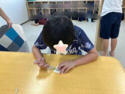 最後は、牛乳パックと輪ゴムを使ったおもちゃ作りです💓