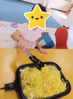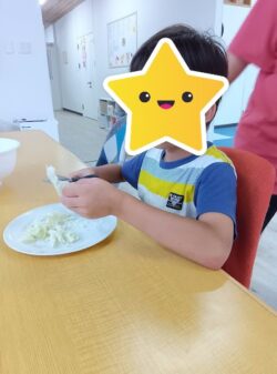 最初に、キャベツをハサミで切り刻んだり、手でちぎったりして、キャベツを細かく分けました。