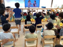 動画を使って、子どもたちもスタッフも一緒に子ども歌に触れて楽しみます🎶