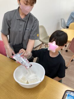 ②白玉粉と豆腐をダマにならなくなるまで、一生懸命混ぜる係