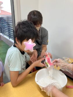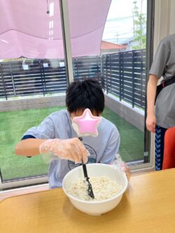 ④お団子を茹でて、浮き上がってきたお団子をすくって冷水にいれる係