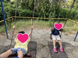 ブランコ・滑り台でで遊ぶ子…