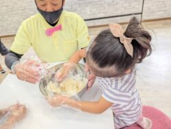 まずは【まぜまぜ隊】に生地を混ぜてもらいました。