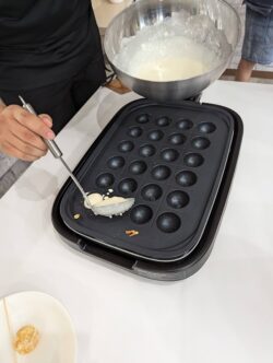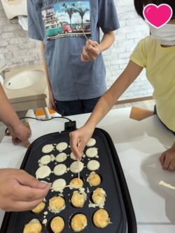 お次はホットプレートに生地を流して