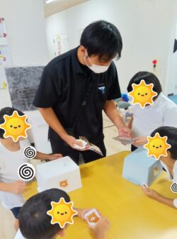 それぞれ同じカードに入っている箱の中から景品をもらってみんな嬉しそう😊