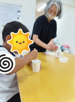 本日の課題は「感覚遊び」を行い、スライム作りをしました。
