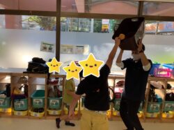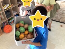 スタッフや、お友達が持つかごめがけて・・・それっ!