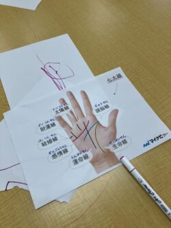 手が描けたら、今度は自分の手相をじっくり観察しました。