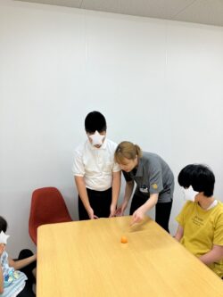 続いてピンポン玉キャッチ!転がってきたボールをカップでキャッチします😊