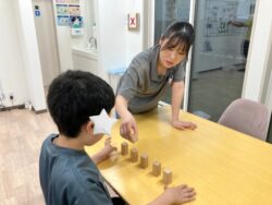 最後は、積み木トントン!スタッフの動きを真似してみよう!