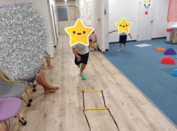 一本橋・ラダー・トランポリン・バランスストーンの4種類を行いました!
