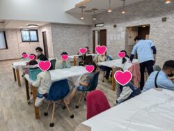 まずは、スタッフの作ったものを見てもらい、手順やハサミ使用にあたっての注意点などの説明をしました。みんな静かに集中して話が聞けてるね✨